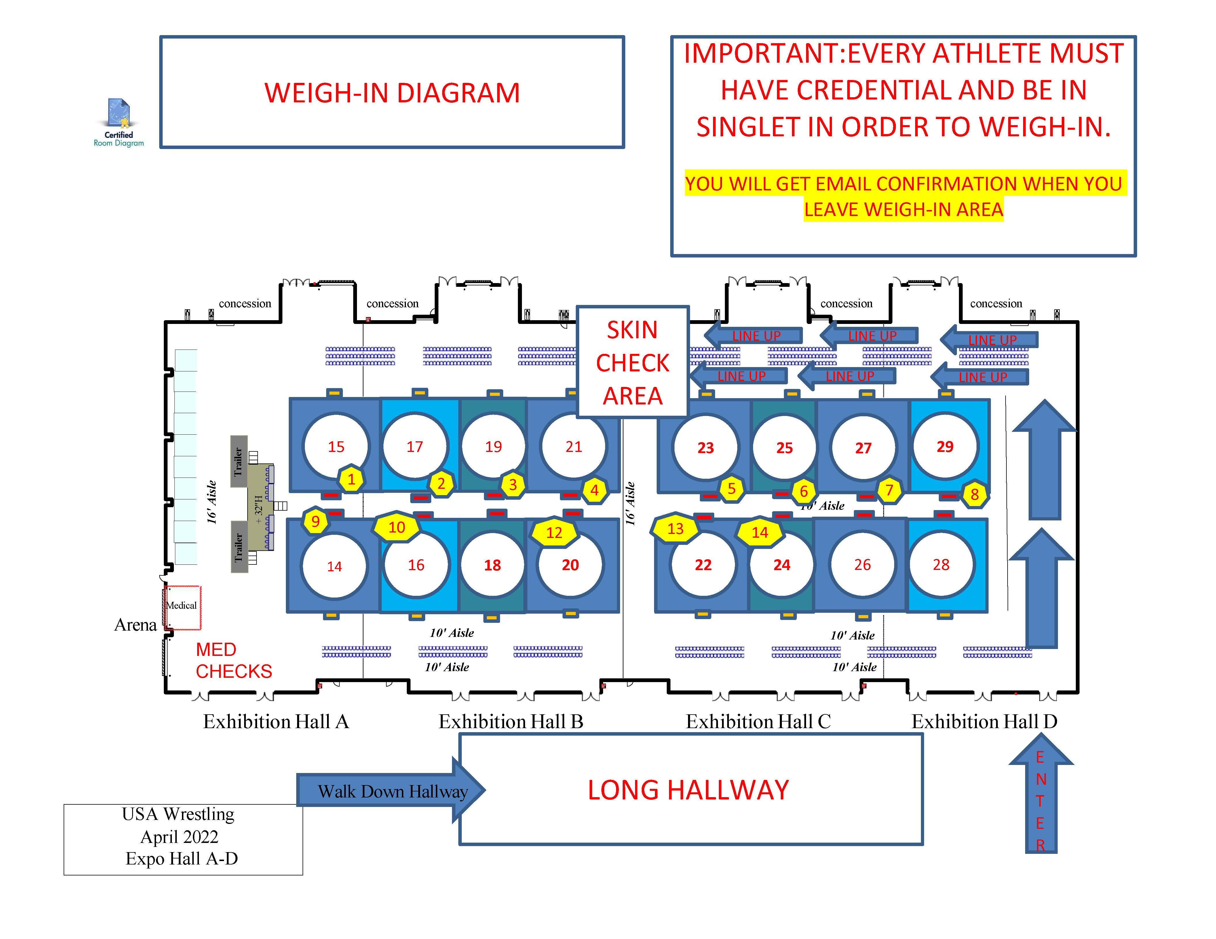 - Wrestlers MUST be in the weigh-in area during designated weigh-in time frame.