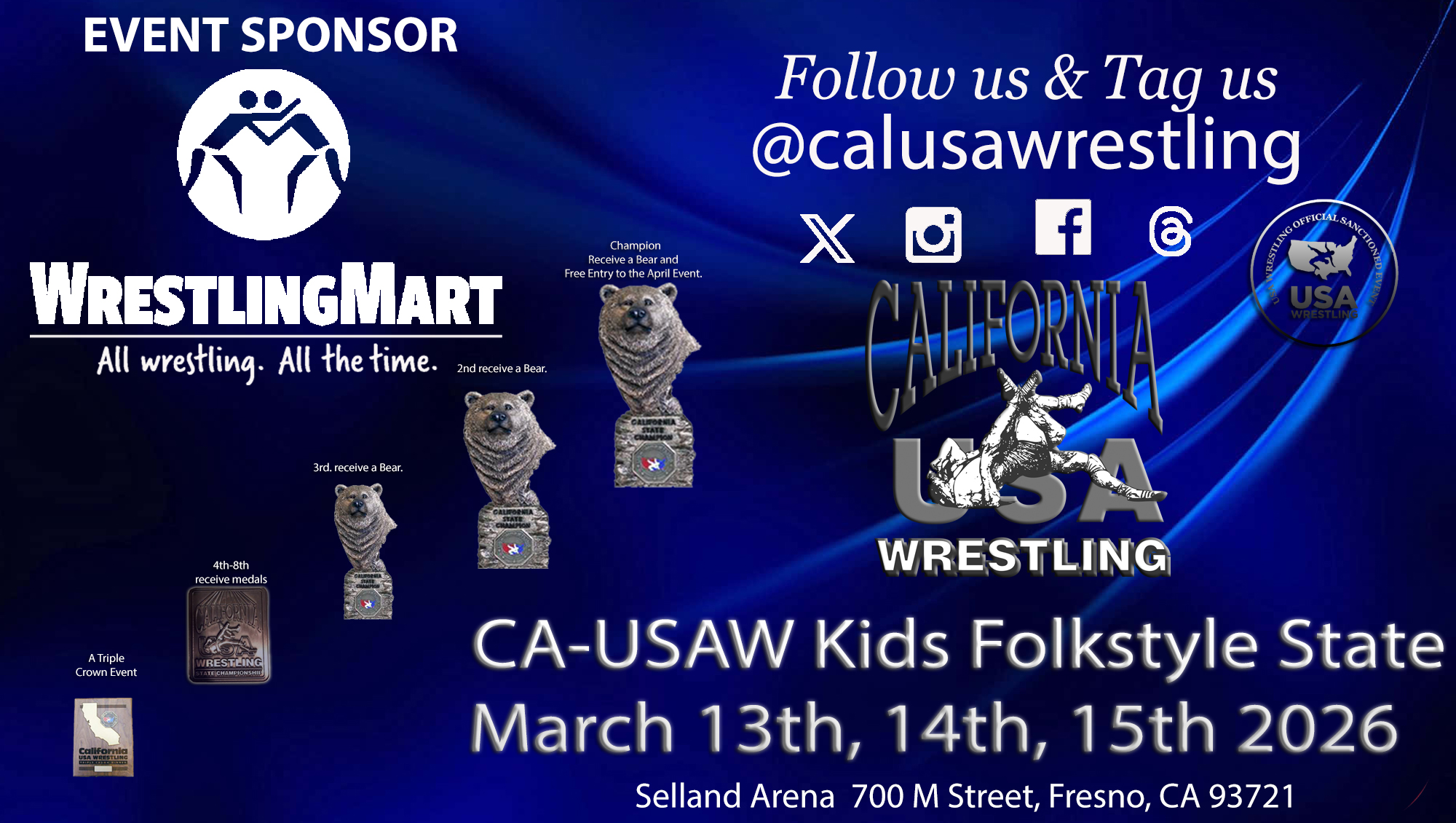 CAUSAW-Bantam-Intermediate B/G-Novice B/G-Schoolboy B/G Kids Folkstyle State
