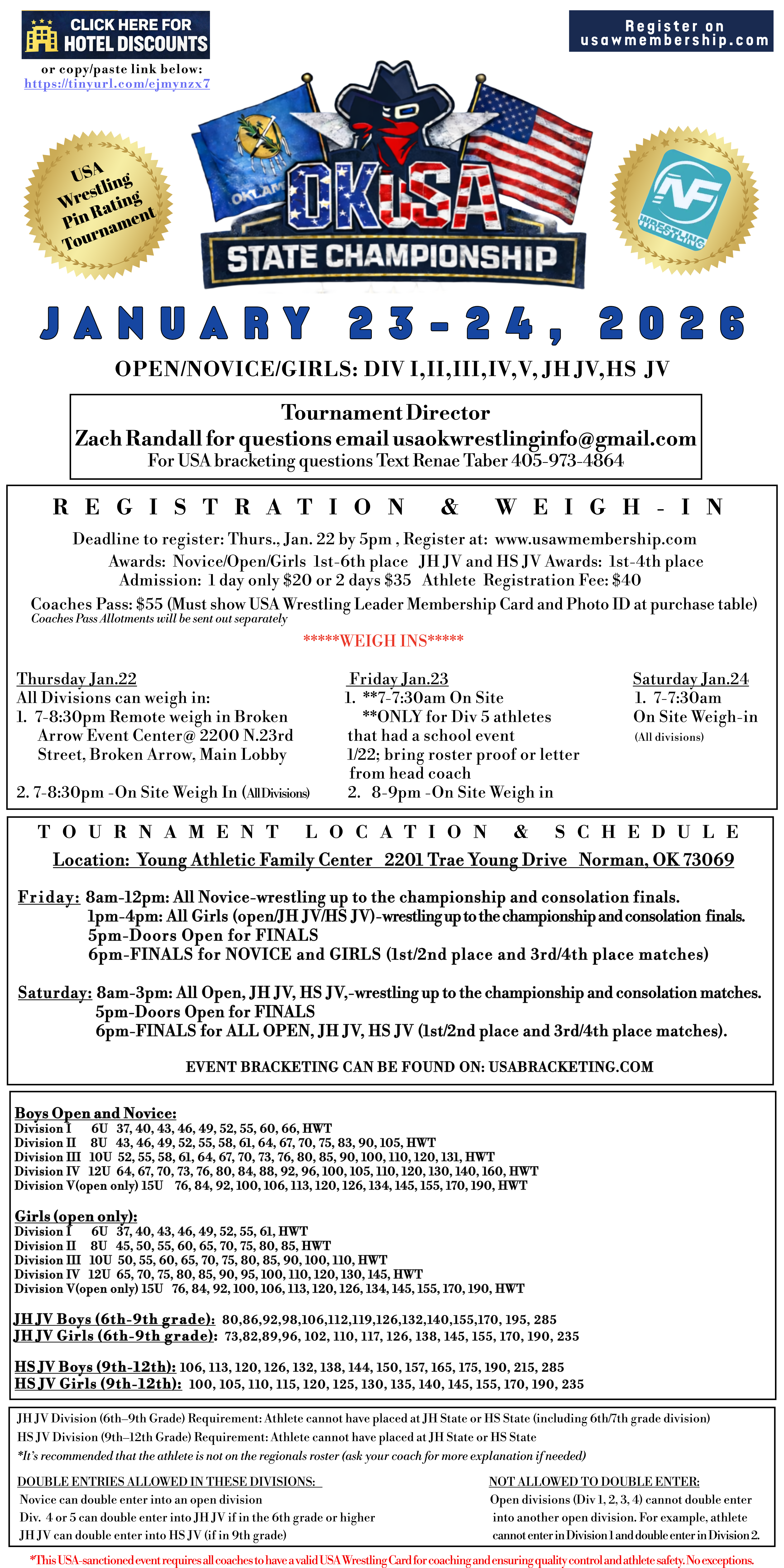 10U, 12U, 8U, HS Boys - 9th - 12th, HS Girls - 9th - 12th, U15, USA 6U Beginners