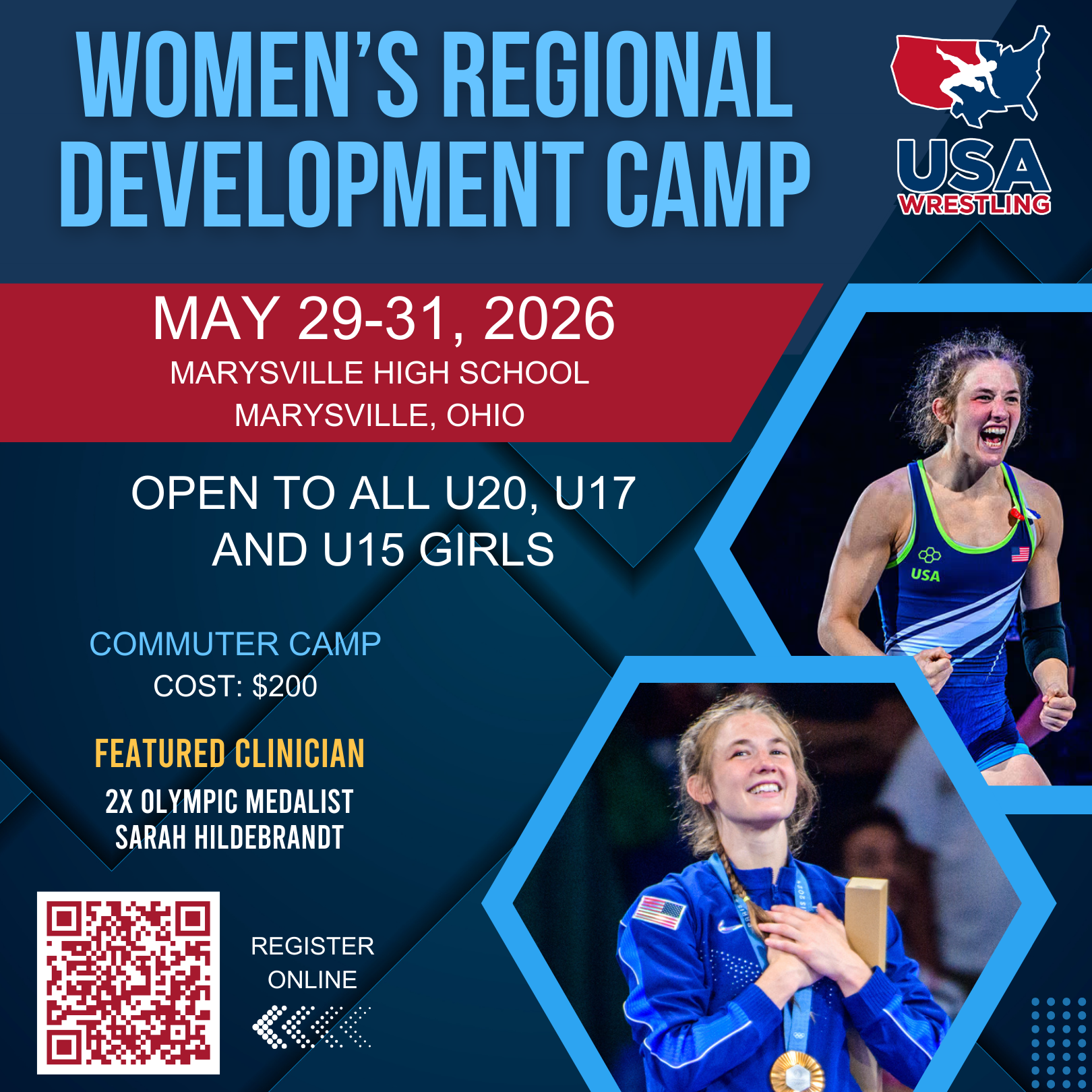 Marysville High SchoolThe USA Wrestling Women’s Freestyle Regional Developmental Camp is set for May 29th-31st, Maryville High School, Maryville OH.