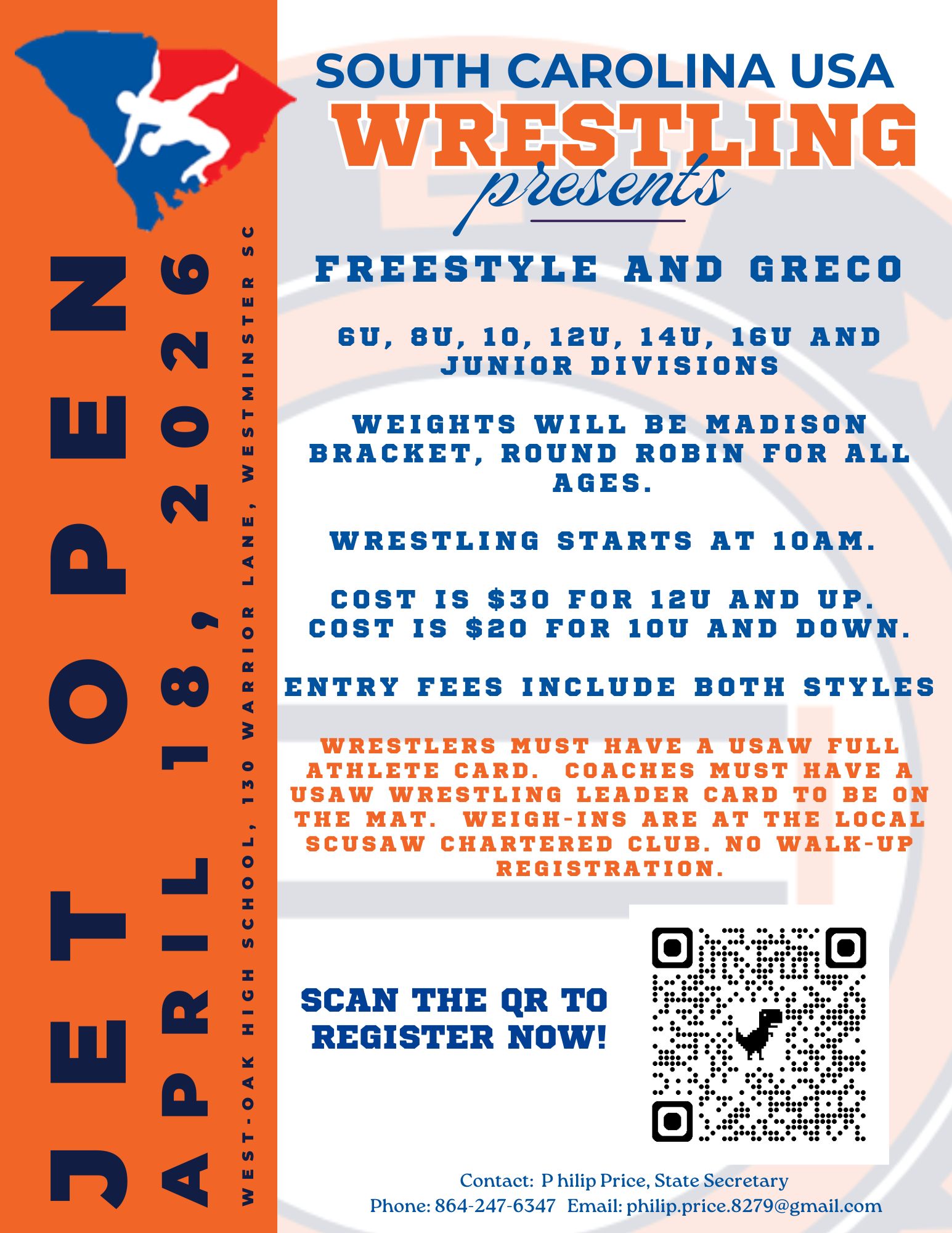 USA Card Requirement: All wrestlers must have a current USA Wrestling Card to compete.