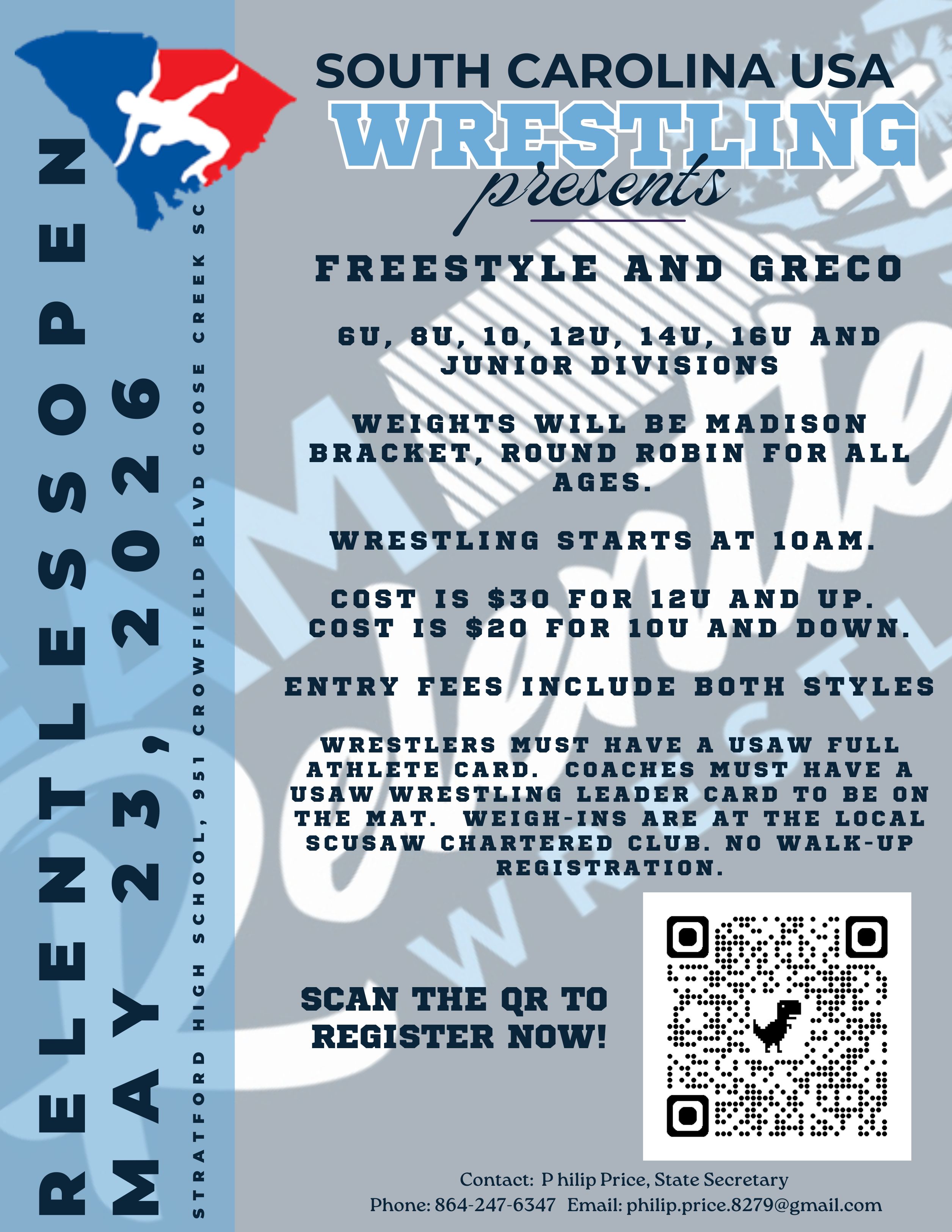 USA Card Requirement: All wrestlers must have a current USA Wrestling Card to compete.